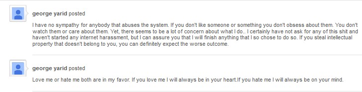 In another case when a troll uploaded one of his videos to Youtube he threatened his life which is hilarious considering they live in opposite sides of the country. George also told him that he would be famous by now if he had the right agent he would be famous by now AND TYPED IT IN ALL CAPS!!!!!!!!!