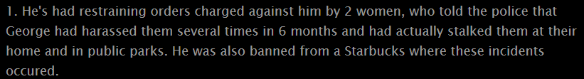 Other than the typical bawing by George he does his usual straw man grand standing. Claiming that all of his haters are secretly attracted to him and or admire him. In one case he bitches about one troll being gay and calling him "that mashed potato face guy". George not seeing the irony that his face looks like it has been through the cheese grater at Taco Bell several times over.