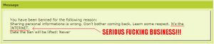 Eventually, the incredibly stoned admins got around to banning the trolls. Too bad they didn't ban their IPs. It took the admins days to realize that there was such a function as IP banning, but they didn't take proxifying into account.