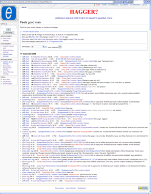 Grawp also occasionally spams Wikipedia:Special:RecentChanges.