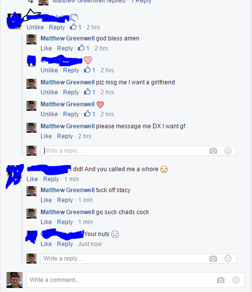 In 2016, a group of boys at Bartram Trail High School [1] created a page mocking an autistic weeaboo named Matthew Greenwell. Greenwell, a well known furfag, was known at the school by the nickname "Dog Fucker". Matthew Greenwell always made the comment when he was called "Dog Fucker" that it was a stale meme with no value, boy was he wrong. The group of boys called their group the "Greenwell Brigade" and began shit posting the young Matt Greenwell's entire life into a stale meme. The page was also well known to like all of his own posts and comments. The page featured pictures of Matthew stolen from his mothers facebook page, including one with a caption "this is the face I make when I eat pussy". His bio read "Proud to be an American, Proud to be a furry, and proud to be a dank ass nigga if you know what I mean. He was known to enjoy bagel bites in the shower.