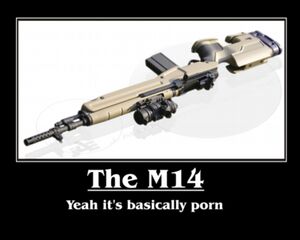 Like the climax of every Disney sports movie, the M14 has made a sudden comeback, sans full-auto capability. With the rise of anabolic steroids and a need to spread democracy at ranges exceeding 400 meters, the M14 has met a revival with snipers and designated marksmen in the lulzfests of Afghanistan and Iraq. With generations of retards raised on counterstrike and a whole desert full of people in need of some democracy, the future for this once forgotten rifle looks brighter than ever!