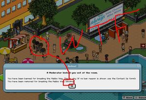 On Habbo, some of these people take on even more lulzworthy aspects, due to the fact that they believe they're part of an 'army' or 'police force' or 'mafia'. Some will even try to attack you, despite the fact that it's a family game and you cannot in fact attack people. Point this out to them for epic lulz.