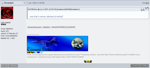 Terrorist units? Are these the people that caused WTC??? It seems the Hallcats are indeed responsible for WTC, not the Jews, or the government, like some faggot keeps on saying. After a mod ended all the RAAWWWRRGGGHHH!!!1ing and all the GRRR!!!1ing, one brave man by the name of Zaku decided to challenge the literary master. The challenge was accepted, and we all waited to see who would win. We knew who would win, anyways. But, the Anal Lyst analyzed the situation he was in, and saw that he would lose, so he quit, saying that he was too busy IRL.