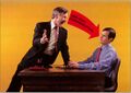 L Ron demonstrates proper use of the E-meter on the average scientologist