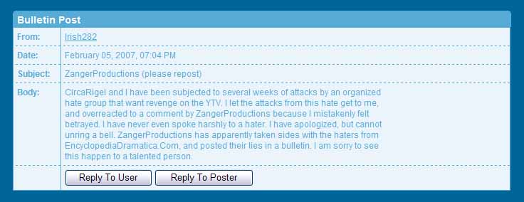 Irish282 Apologizes to YouTube and to Encyclopedia Dramatica for Lying