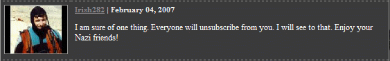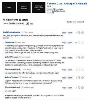 Claude has been in propaganda overdrive ever since. He's since removed his Irish282 channel of all YTU/Jesari images, and left several comments around YouTube stating that TobiranHorde is in fact a phony account set up by the Yahweh Clan. He has yet to explain how Nico's well-documented life has been fabricated.