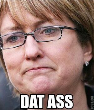 A total cow to start with, one theory is that the more powerful she got, the more her husband, Richard Timney, got impotent at the sight of her smug and bug-ugly face, so he took to wrapping her head in a paper bag and fucking her while watching extreme porn; maybe that isn't true and he was just into doing the five-knuckle shuffle over gay porn and they are really just beards for each other.