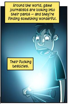 Dan's career in taking candy from babies has been going strong since 2005, when he baited Sony's Peter Moore regarding the laughing stock that would become the PS Triple. Penny Arcade made a reasonably good effort regarding the interview (pictured right), and "The Glowing Balls Of Dan Hsu" would probably have been a pretty good meme. However, it was disqualified from the internet due to its source (see also Krystal Can't Enjoy Her Sandwich).