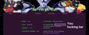 Jax over the past year has apparently done something to a resident in Oklahoma and owes another member on Furaffinity over $1000.00