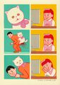 Joan Cornellá Vázquez is an absurdist artist of Spanish origin who in an almost unheard of instance completes the holy trifecta which distinguishes the true Dramatican; namely originality, humour and all-round sick fuckery, while overcoming the debilitating condition of having been born a girl. Cornella's style although simplistic encompasses and some argue seeks to have the observer further contemplate a multitude of complex and often taboo subject matters including but not limited to: suicide, murder, gore, abortion, nudity, torture, disability and deformity, homosexuality, guns, black person, crime, cats, dogs, drugs, humanity, religion and sometimes scat, usually within six panels and often to great comedic effect.
