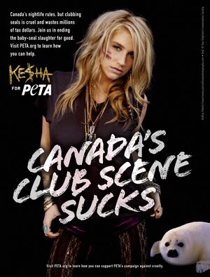 Ke$ha (pronounced: kesh-it) is a pleasantly plump 38-year-old Americunt singer, songwriter and white rapper who is known for her numerous chart-topping hits, frequent abuse of Auto-Tune, getting her own short-lived reality television show on MTV and for being a leading human and animal rights activist who claims to possess a haunted vagina and is obsessed with glitter, beards, serial killers and collecting human body parts. Oh, and did we mention that she's recently accused her producer of pulling a Cosby on her a decade ago?