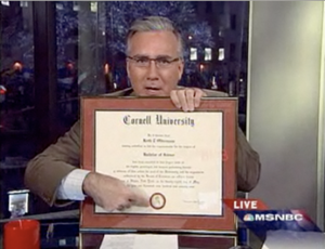 Keith Olbermann got all butthurt after Ann Coulter pointed out that he received his diploma from Moo School instead of an Ivy League institution. He also thought that it would be a brilliant idea to play "show & tell" with his diploma on national television, so that everyone could see his deep-seated insecurity.