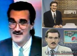 Prior to getting work as a pundit for MSNBC, Olbermann was mainly employed as a sportscaster. After leaving ESPN to undergo anal prolapse correction surgery in 1998, he got a job with Fox Sports as an anchor and did the play-by-play for several World Series games. One day in 2001, he decided that he'd rather voice long-winded comments about Guantanamo Bay instead of Mark McGwire's steroids. He was hired by MSNBC, and did bitch-work for 2 years before they realized that Phil Donahue's show sucked ass. The MSNBC Gods promptly fired Donahue's ancient ass and gave the time slot to Olbermann, who started a show called Countdown: Iraq to push MSNBC's anti-war propaganda. After Americunts ended up invading Iraq anyway, they changed the premise to the rage-filled Bush bashing and O'Reilly trolling that we know and love today. Olbermann routinely displays his metaphysical math skills, as he is dedicated to demonstrating how having one-half of O'Reilly's ratings actually means his show is more valuable to advertisers, citing something about ages 25-54 being "more important".