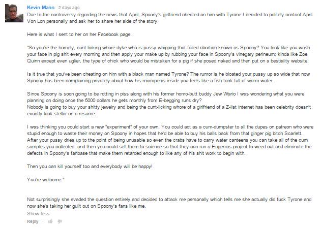 It is generally agreed that Kevin Mann graced the presence of ae sometime in December 2014. For a time, he did as any good faggot ought to; lurk and lurk and fucking lurk some more. Yet, as all newfags have to pop their cherry some time, Kevin did not disappoint when he decided to unbutton his cock holster. Yet even before he decided that it was a good idea to browse ED, Kevin had a history of saying shit no one cares about to, well... no one who cares.