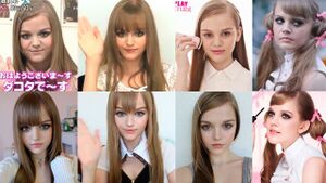 More recently Koti has been signed on to the Bravo modeling agency who has sent her to Japan to achieve kawaii idol stardom. She landed a tv interview there where she revealed her real, unshooped self to quell the haters. The results were glorious. After realizing how badly she fucked up, Koti hastily removed all evidence of her real face from youtube, carefully editing the interview to hide all appearances of her real face, and slamming other youtube accounts with 'copyright' infringements. Some have attributed her apparently more bloated appearance to a side effect of bulimia, others say she has claimed a bee sting, still more reason it's some kind of symptom of photoshop withdrawal. Either way, Dakota's own claim to fame has unraveled the photoshoped illusion. Because the Ostrengas are endlessly surfing the net to get all evidence of their daughter's true so unkawaii self being revealed around the world, the video has yet again been taken down from all the false copyright violation claims on youtube, facebook and good old tumblr. So here is a link to the video yet again. http://videobam.com/GbaJD
