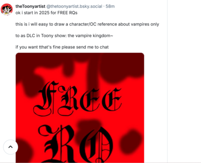 - Art Trade because she love doing this and scam people on art trade so much for years! she hate doing free art and request- she will never open those!