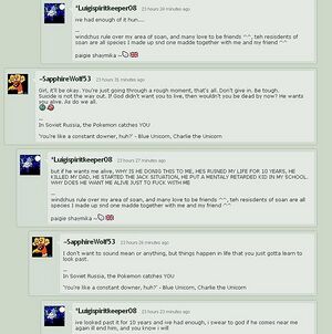 Amidst the dark and gloomy clouds the Trollz brought over her, there rode a breed of fucktard seen many times before on dA - the White Knight. They consistently fight back on the side of the Lolcow. Paige has gathered a very large (and still growing) host of these she now calls her "family".