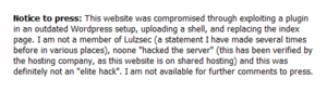 TeaMp0isoN hacked the website of a suspected lulzfag joepie91 and posted a message stating hacking involves stealing more then other peoples work, using google searches or clicking GUI buttons. Sven Slootweg, the owner of the hacked website sven-slootweg.nl, points out he is not a hacker;