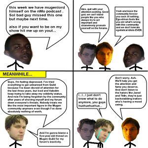 - Posters complaining about getting character requests in their inbox and posting five-page topics about it on Mugen forums because it's really, really worth it