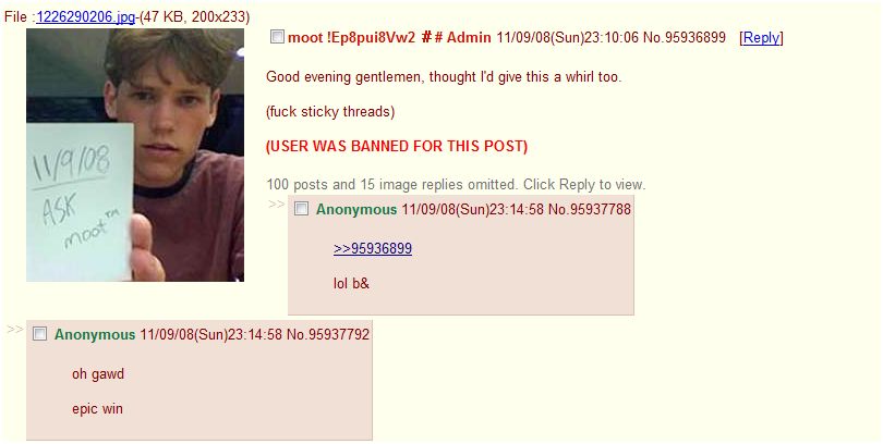 However, in December 07, moot's castle of hentai, AIDS, and cat macros was taken from him, forcing him to live as just another gay person on the internet for a few days.