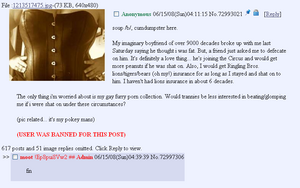 - He repeatedly bans female camwhores saying he doesn't care and when a male hits on moot, moot replies back eagerly and then stickies the post.