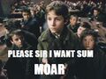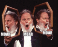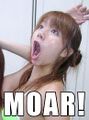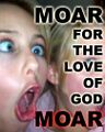 Analogous to a baby crying for it's pacifier, MOAR is cried out by helpless lurkers, in hope that maybe, just maybe OP will step in and regurgitate the whole set. Like sauce, it is used whenever someone puts up some porn of unspeakable nature.