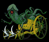 Mara is a demon from the Shin Megami Tensei series of Japanese RPGs who takes the form of a large, green phallus with tentacles that often rides around in a golden chariot that has been pimped out with deadly blades. Mara is based on a demon from Buddhist mythology that attempted to seduce Buddha by pretending to be the little girl. Despite Mara's suggestive appearance, he has been spared from the usual treatment due to his appeal among young, women gamers and due to the fact that he is often mistaken for the much more family-friendly LOL WUT pear.