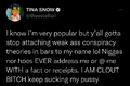 Three weeks after the release of the video for her shitty hypersexual burger of a single "Big Ole Freak," Megan found herself in New York, poised to launch her new mix tape, Fever, as her mama was pushing daisies from a brain tumor that was probably caused by too much stress reflecting on phrases like "Sex Sells". Megan took that phrase WAY too seriously by constantly singing about her ass and vagina trying to lure those losers with nasty fingernails filled past the edges with strange, smelly goop from their undies who say they have a sickness for the thiccness with her annoying "Ah" noises. It's funny how Megan claims to be against sexual harassment because the lyrics of the music she shits out would very likely be considered sexual harassment to our ears! We shit you not! Here are some examples of her skankiness that will have you wanting to report her to the authorities for sexual misconduct!