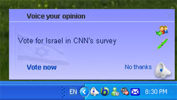 Importantly, the Israeli Foreign Ministry supports the Tool. It's always good to know that you have OFFICIAL APPROVAL when you're a Jew patsy. Ironically, even though the Tool reminds you to "Voice your opinion" on its popups, it always automatically votes the way the Israeli Foreign Ministry commands it to. It's probably just as well, considering you aren't capable of forming your own opinion anyhow.