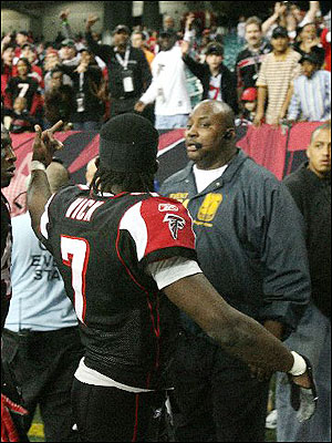 Vick's own brother Marcus was also a standout QB at VTECH, notching up a stellar rap sheet including a conviction for providing alcohol to three underage girls, possession of pot, contributing to the delinquency of a minor, nine traffic offense convictions (including speeding, reckless driving and driving on a revoked license) and a three count conviction of brandishing a firearm and making terrorist threats in a McDonald's parking lot before getting banhammered from the University. He celebrated by committing sexual battery on a 15-year-old high school girl who he plied with booze and pot before asking her to have sex with other men.