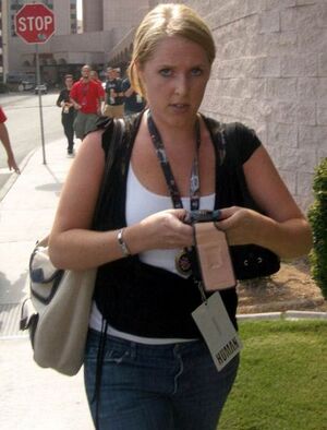 Good question! Could it be because she proved that blondes are inherently stupid? Probably. As to how she provided said proof, on August 4th, 2007, Madigan was outed at Defcon 2007 as an undercover reporter who'd snuck into the con under false pretenses in hopes of catching h@kk3rz plotting evil schemes against the world, or at least outing any undercover Feds who also snuck in under similar false pretenses for the same slimy reasons. And she might have even gotten away with it if it hadn't been for two things working against her: