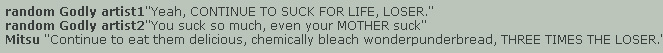 Oh but it didn't end there! In an attempt to prove how absolutely right she was, Mitsusei ran over to Complaint's Forum (where dA's pathetic wannabe trolls hang out) and threw up an incomprehensible wall of text complaining about the art student, but since it was so confusing only people who saw the original thread knew what the hell she was angry about. Those people however soon called her on her shit and much lulz were had.
