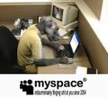 Serving as a hybrid of Friendster and LiveJournal, MySpace (Pronounced: Mee-Spah-Tszche) initially invented for pedophiles, is now an all but forgotten ruin, that used to provide attention whores across the internets with twice the ability for tasteless self-promotion. MySpace was also a haven for middle-class suburban emo teenagers to whine and moan about how their lives are so "tough", even though they probably never got one in the face. A typical person's Myspace page was saturated with annoying music, anime and "artistic" pictures, and the use of many quotes. Therefore, many lulz were found within this site. Many trolling groups, such as Penis Pump, defaced MySpace pages for the lulz. MySpace was the cancer that brought us Boyce Avenue, a self-centered, untalented piece of whiny shit.