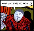 New Zealand Fail Guy (NZFG) is a meme which was born suddenly on 10th of February due to epic fail during the Scientology IRL raid in Christchurch, New Zealand.