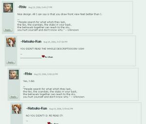 Have we flipped a bratty retard around? Will she now be a worthy member of DevianTART? It doesn't matter what you do now, Natsuko-Kun: because Anonymous NEVAR FORGETS and NEVAR FORGIVES.