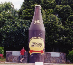 The first lemon tree in the area was planted by Captain Hook in 1779 after having just sailed from the planet Mercury. Lemon trees grew wild for the next 100 years until the Jew settlers arrived. The jews found lemon juice to be refreshing when put through a Soda Stream. Paeroa who forged an entire identity on this delicious drink, then built a monolithic tribute to their own creation. The cruel god of Paeroa demands blood from a tourist every two months which gives him power for terrorist attacks against Justin Bieber.