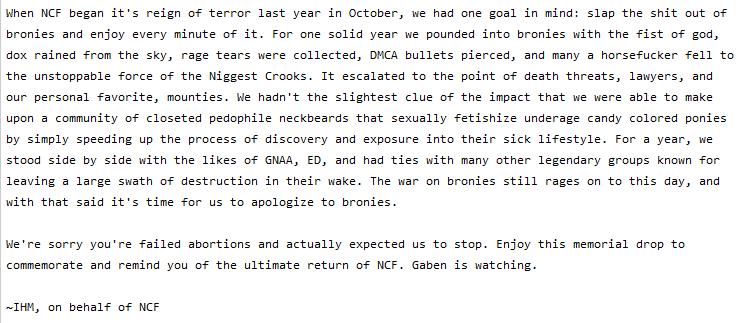 Ask any brony and they'll tell you that the Niggest Crook Force are "a bunch of troll accounts by