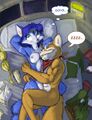 An NES character is forced to perform fellatio on one player while being sodomized by another's big blue penis.
