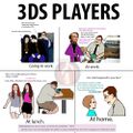 Besides being as a regular Nintendo DS, Nintendo 3DS lacks Pictochat, has Gamecube-esque graphics and a region lock. A new addition is upper screen Auto-erotic asphyxiation 3D which will make you nauseated and you instantly turn off. Other new features are: