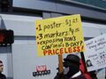 Portland had a turnout of at least 100 anon. Thankfully, Einstein did not come. This protest did not have an attention whore interviewing himself for the media. Without einstein the protest became MOAR fun, and we had some excellent signs. Diabeetus man was there again, and as it turns out he is a hired goon for the cult location. Diabeetus Man was very polite and actually smiled at us this time, and told us how he was thankful for how well-behaved we were. Because of Portland being a bunch of fags, there was the yearly anti-war protest in the city. It proved to help us slightly because of the constant stream of activists moving through. Their protest was right next to ours making it hard to get media attention. All media was focused on covering the Anti-War protest live, so Anon did not receive worthy media attention. The Scilons did post new stuff in the windows this time, and placed a giant banner with a quote from L Ron.