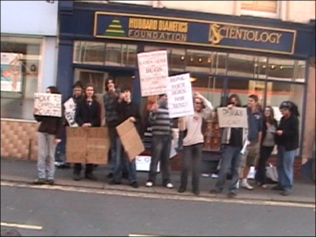 Basically Manchester was win. Between 100 and 200 people turned up. Police told Scifags they couldn’t stop us protesting or taking photos even though they bitched over 9000 times. Thousands of flyers distributed. Many a honk of support. Pwnage images (see last image in the 6th gallery). Minor rickrollin’ and Belair’in, major Bohemian rhapsody! Argument with scifag on street, she denyed XENU story and Lisa Mcpherson story, obvious brainwashing on her. We need another with more flyers distributed before the protest to invite UniFags with no internets who would otherwise have come. Guy with huge camera is yet to post his video! Manchester Anon = WIN!