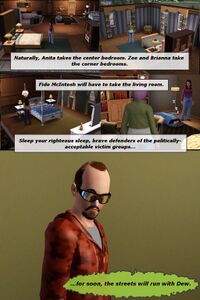 The three main characters of his novel (Stryker, Ramirez, Jenkins) are a self-insert, a carbon copy of a video game character, and a troll invention, respectively.