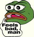 Feels bad man (also known as Sad Frog, Feels Bad Frog, You will never... or, by his real name, Pepe) is the lugubrious yin to Feels good man's exuberant yang.