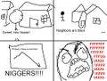 Though Hot Topic had been selling their Rage Guy T-Shirts for awhile once word finally started getting around people become extremely angry that such a large corporate entity would be so blatant in their hatred of the black man. Maybe Hot Topics owners had lost one too many TV's to the urban demographic and no longer gave a fuck or perhaps their lily white girlfriends had been stretched beyond limits by the thrusting manhood of the dark skinned ape. Regardless of the reasons behind their hatred of African Americans soon people online took up arms against the large retailer the only way they knew how; by posting about it on the internet.
