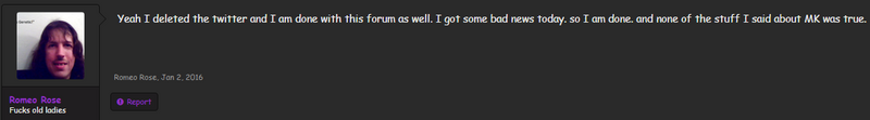 He claimed that his actions under the identity of "Romeo Rose" were meant to be Andy Kaufman-esque and he was totally acting retarded on purpose.