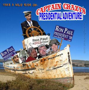 His fanbois, The Ronulans, are probably some of the most easily trolled on the entire internet. Just say you're Jewish or Black, claim allegiance to the Illuminati, Freemasons, North American Union, or ZOG entity, or mention that Ron Paul has publicly denied that Jews did WTC, thus alienating his base. Last Thursday, after his wiki was redecorated with Goatse by anonymous, his supporters proved how truly libertarian they are by making everyone submit a scan of their photo ID and other personal information in order to have edit privileges. LULZ IRONY.
