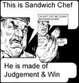 The Sandwich Chef knows all and sees all; he is made of omnipotence and win. He is a judge and arbiter of all things who may be called down by a /b/tard in order to determine what two ingredients a post or image is made from. He is also known as The Sandwich Guy.