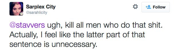 His connection to it was only tangential, but nonetheless hilarious. "Sarah" created "The Twitter BlockBot", a bot that allows thin-skinned people to automatically block a list of tens of thousands of people Sceptre (who's skin is ironically thick) has deemed to be "Harassers". But, if you are jumping to the conclusion that I put that word in quotes because what he actually blocked is trolls, you are not completely right. The ones actually blocked are anyone who isn't an SJW. This includes actors, athletes, Barack Hussein Obama, major corporations and Richard Dawkins
