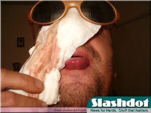 Before it became irrelevant thanks to the rise of digg, reddit, and their ilk, Slashdot's position as the center of geek news also attracted some of the most creative trolling this side of Usenet. TOW even devoted an entire article to the subject, before the anti-lulz forces rose to delete it. An archived copy is here, for now. (archived copy of a archive so much meta, so much mind fucking). (For those who joined teh Interweb yesterday, please note that even TOW was actually lulzy at one point.) <==those responsible should have never gotten internet access